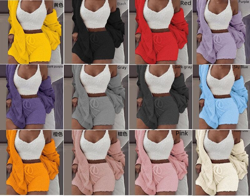 - Comfortable Home Wear:Crafted for cozy winter seasons, this three-piece set includes a long-sleeved top, a crop top, and short pants, providing ultimate comfort at home.
