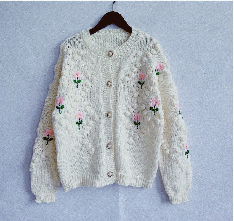 Europe and the United States cross-border Amazon autumn and winter New handmade hook embroidery twist pearl buckle knitted sweater cardigan coat